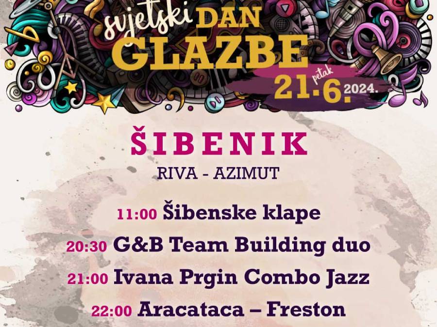 Hrvatska glazbena unija Podružnica Šibenik najavljuje proslavu Svjetskog dana glazbe u Krešimirovom gradu u petak 21. lipnja od jutarnjih sati pa do mraka. Više