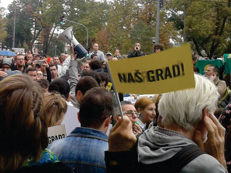 Ilija StankovićNedeljno popodne je odavno postao dan bez nogometa. Raspuklo nebo prepuno hladne kiše, raspukli ljudi koji se bolje osećaju samo ako nekoga drugoga ponize i mirni protest o kojem 2000 prokislih Beograđana traži da im vrate njihov grad. Ti Beograđani su mladi i dobro obučeni, naoružani kišobranima i razglasom kojim se jako dodvoravaju prisutnoj policiji umiljatim melodičnim glasom objašnjavajući da je i policija na njihovoj strani i da su ovo mirne demonstracije protiv oduzimanja omiljenog dela grada, omiljenog kafića i omiljene biciklističke staze. Naizgled jedna sasvim normalna situacija i potpuno normalna slika bez pukotina. Više